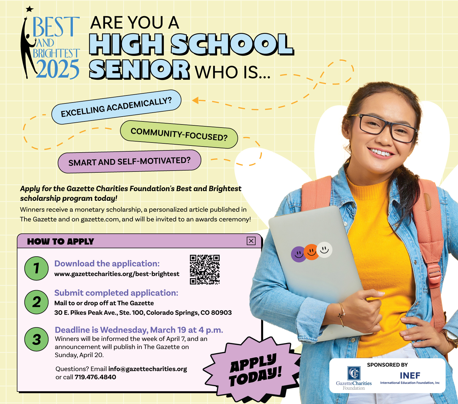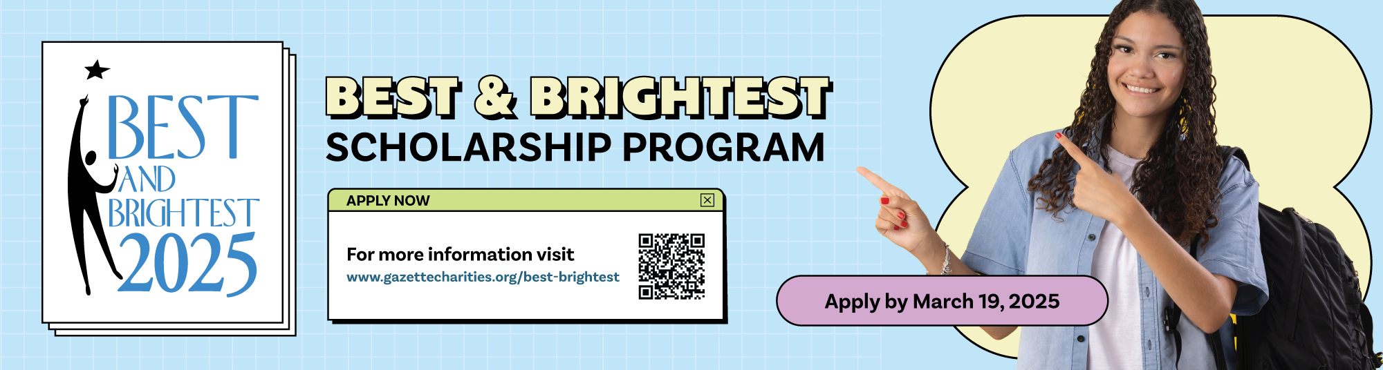 The Gazette Charities Foundation’s Best and Brightest Scholarship program awards scholarships to high school seniors in the Pikes Peak Region. I designed the campaign producing ads, posters, and ceremony collateral. We went with a trendy Y2K design theme since Gen Z was our target audience.