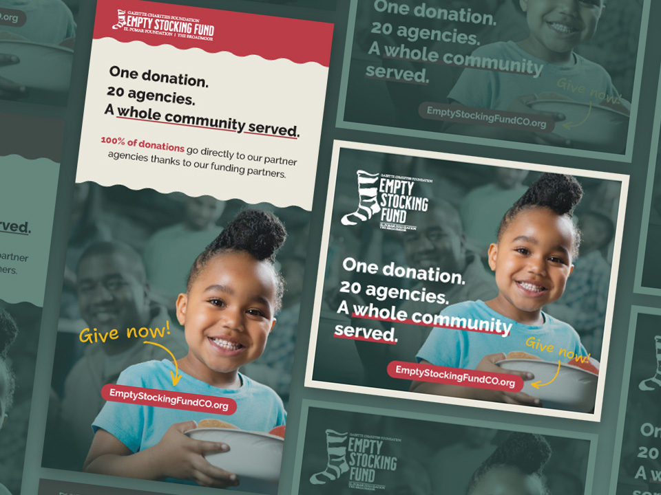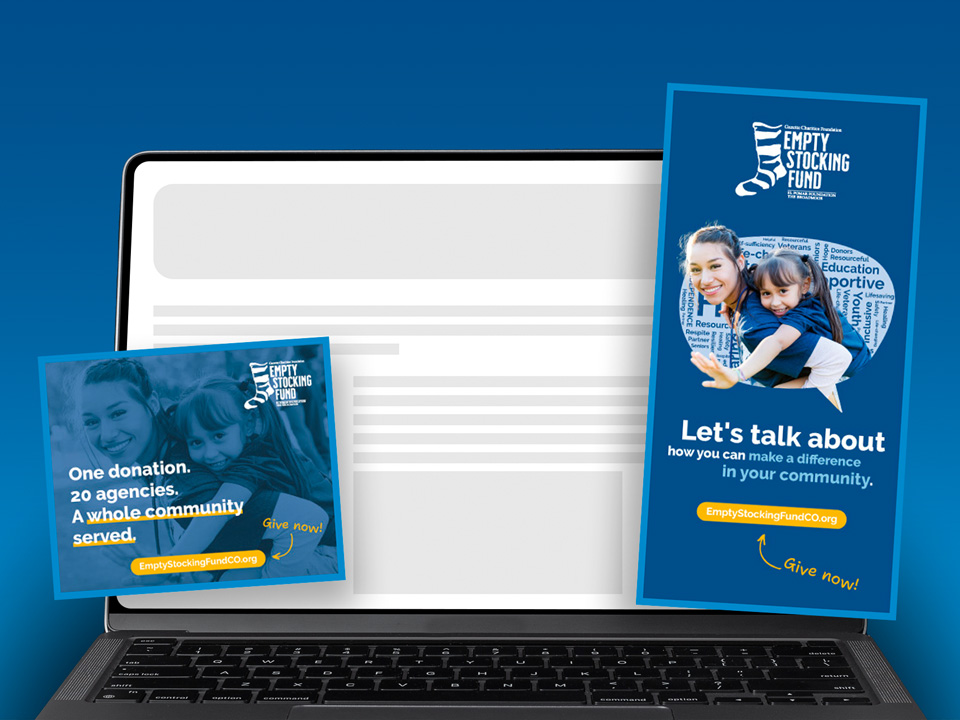 The Empty Stocking Fund provides funding to 20 local health and human service agencies in El Paso and Teller Counties. I came up with a new branding look and feel – creating digital and print ads, mailers, collateral, and the published annual report.